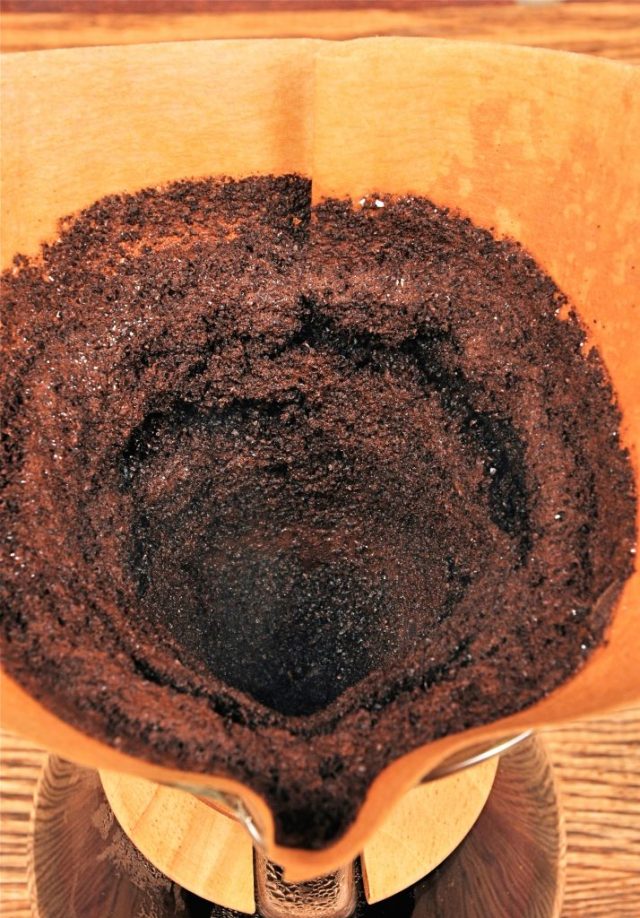 錐形壺的優勢在于,當濾碗大小合適時,咖啡師可在預沖泡后一次性倒入剩余熱水。與階段性倒水相比,一次性倒水能夠保證水溫,避免咖啡產生尖酸的口味。我品嘗過用 V60 和階段性倒水法制作的咖啡,咖啡的味道偏酸,這是由于萃取過程中水溫過低所致。