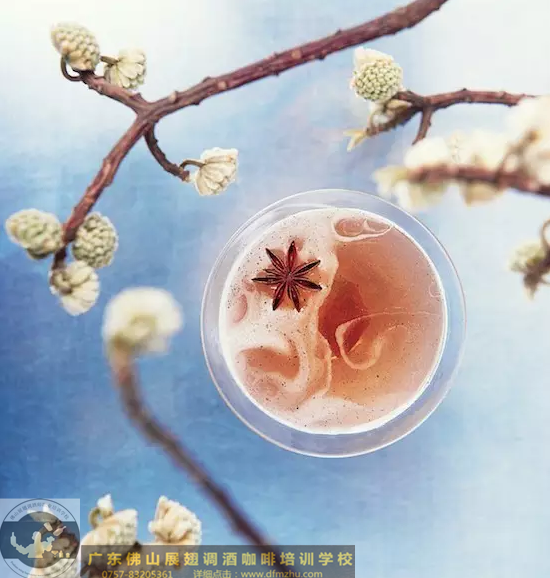 將所有原料和煙熏酸梅干一起加冰搖至冰涼;在杯中放入酸梅干,然后將酒液濾入。以八角裝飾。